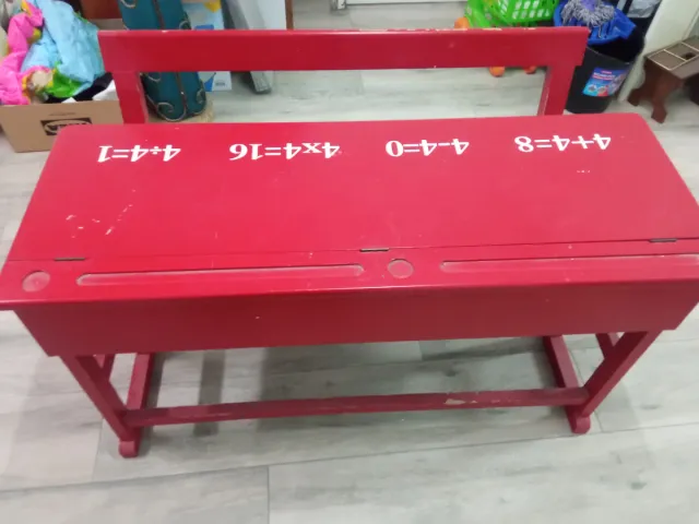 Detalles del productoPupitre escolar de color rojo, ideal para el estudio. Presenta un diseño clásico y funcional.
