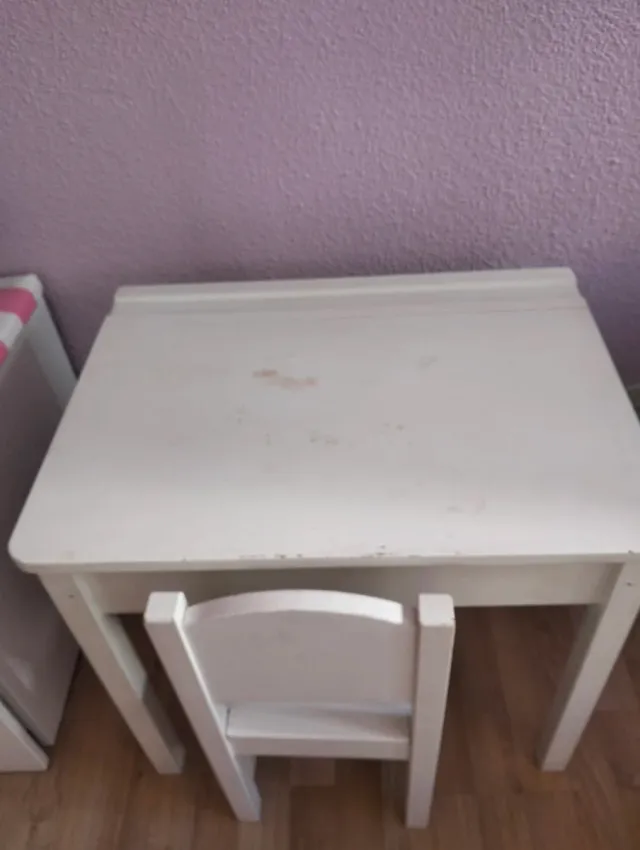 Detalles del productoConjunto de pupitre infantil de madera del Ikea con silla, ideal para los más pequeños. Su diseño sencillo y blanco se adapta a cualquier habitación.