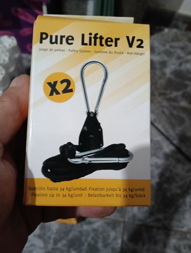 Vendo 8 parejas de poleas Pure Lifter V2. Son nuevos, vienen en sus cajas originales. 2x caja - Sistema de poleas. - Capacidad de sujeción hasta 34 kg/unidad.
