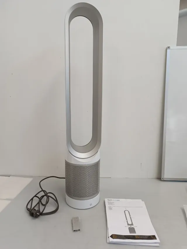 Detalles del productoDyson Pure Cool TP00 – Purificador y ventilador de torre sin aspas, 10 velocidades, 434 l/s, filtro HEPA 360°, capta el 99,95 % de las partículas, Blanco/Plata