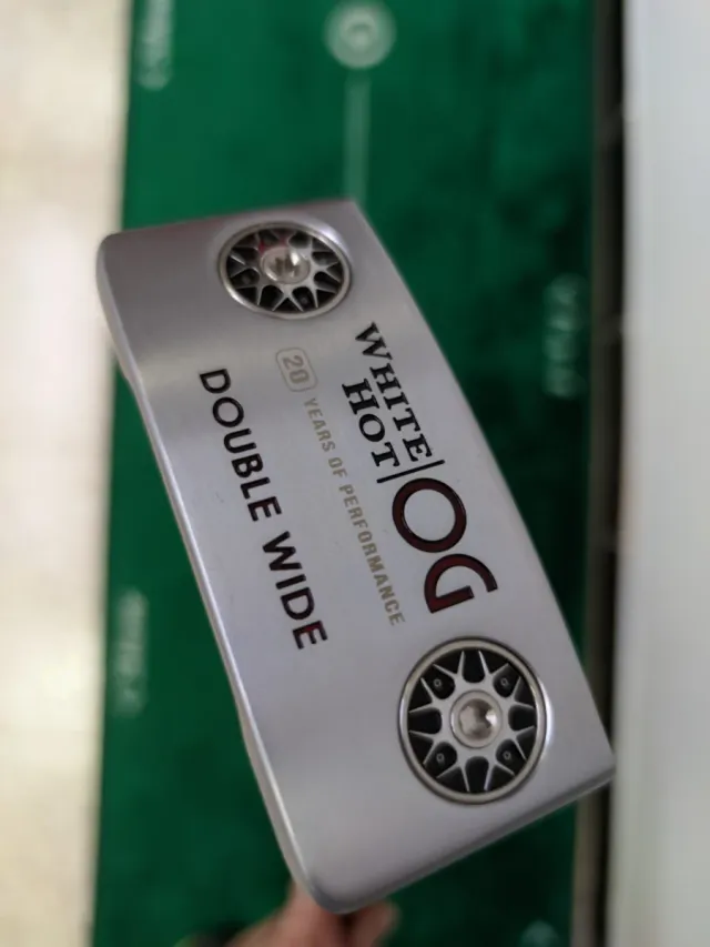 Detalles del productoPutter Odyssey White Hot OG Double Wide, con un diseño plateado y detalles en negro.