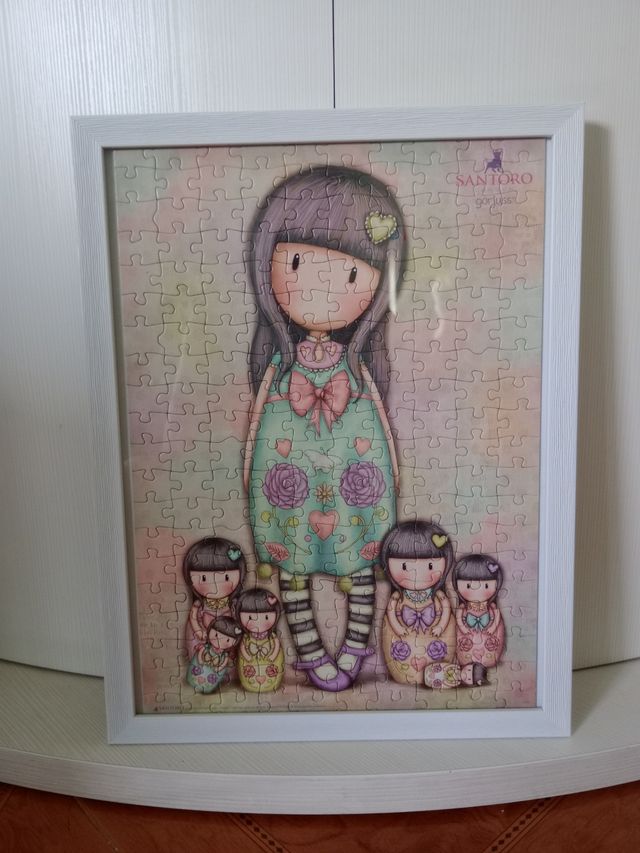 Detalles del producto📝 Puzzle de las muñecas Gorjuss de la marca Santoro, está enmarcado, perfecto para decoración o para regalar. Está en tonos pastel y el marco es duro.