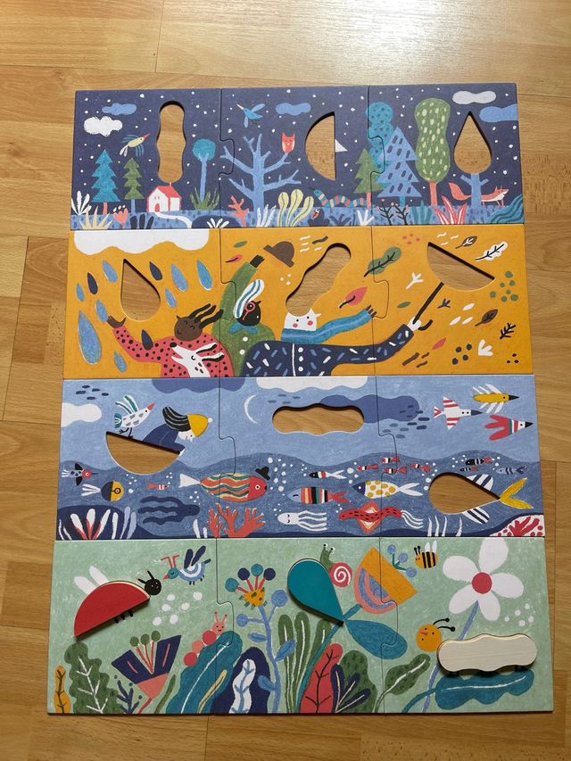 Puzle de la marca Londji muy bonito y divertido para jugar con niñxs pequeñxs. El puzle está perfecto, la caja tiene algún desperfecto como se ve en las fotos