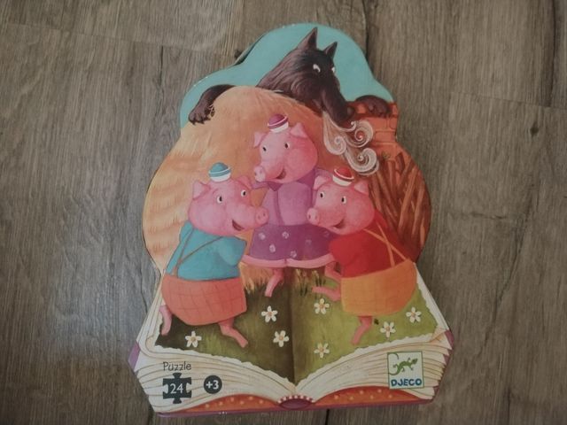 Detalles del productoPuzzle Djeco de 24 piezas para niñ@s de 3 años en adelante. Basado en el cuento de Los tres cerditos. El puzzle está en buen estado, completo y listo para jugar. - 24 piezas. - Ilustraciones coloridas. - Ideal para niñ@s a partir de 3 años.