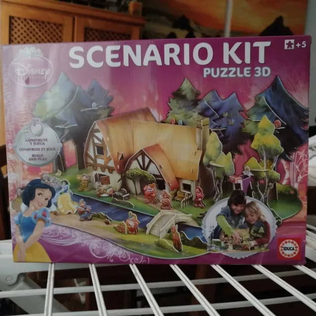 Detalles del productoKit de construcción de puzzle 3D de Disney Princesas, con temática de Blancanieves y los siete enanitos. Incluye figuras y elementos para montar.Sin abrir
