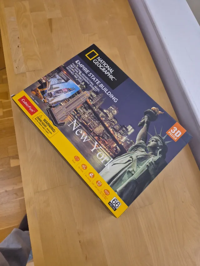 Detalles del productoPuzzle 3D del Empire State Building de National Geographic. Incluye un folleto de fotografía de Nueva York.