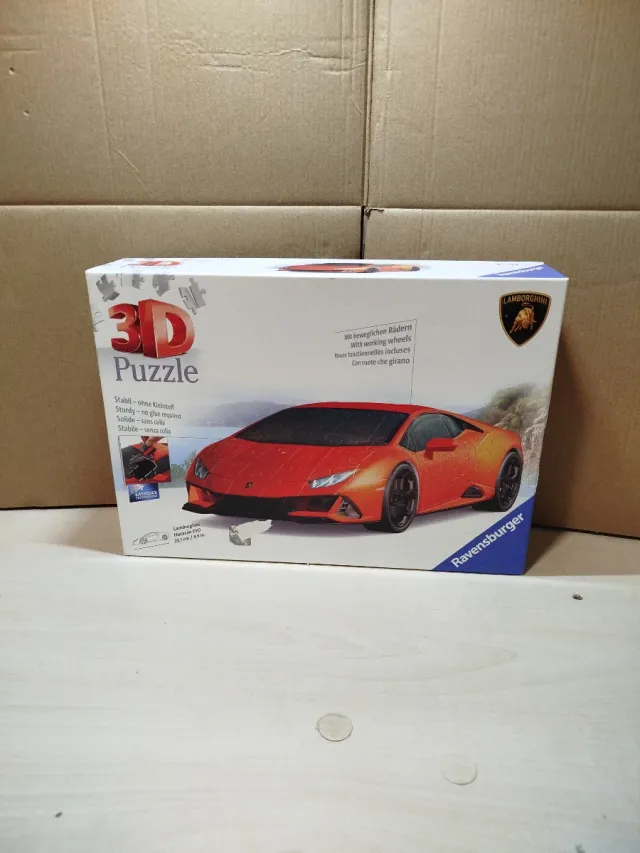 Detalles del productoPuzzle 3D de un Lamborghini Huracán de la marca Ravensburger. Ideal para los amantes de los coches y los puzzles.