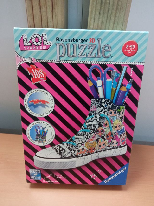 Detalles del productoPuzzle 3D LOL Surprise, tiene forma de bota y pueder ser usado como un lapicero después, a partir de 8 años, completo y en buen estado. Se puede enviar o recoger en Tienda Solidaria Piel de Mariposa BENIMACLET C/ Dolores Marqués 30 (Esquina con Torreta de Miramar + info en la última foto)