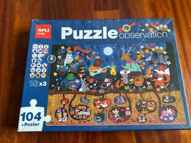 Detalles del productoPuzzle de observación de Apli Kids con 104 piezas e incluye un póster.