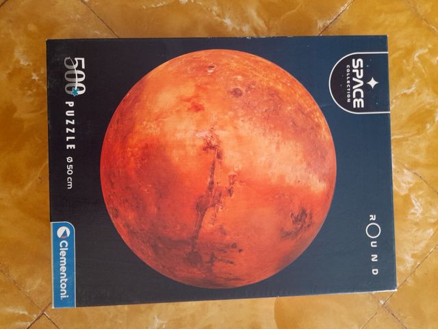 Detalles del productoPuzzle Clementoni de 500 piezas con forma redonda. El diámetro es de 50 cm. Es un puzzle de la colección Space, con una imagen de Marte. El puzzle está nuevo y en su caja original. - 500 piezas