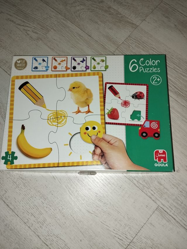 Detalles del productoJuego de 6 puzzles de colores de la marca Goula. Ideales para niñ@s a partir de 2 años. Son de cartón resistente y presentan imágenes coloridas y atractivas. - 6 puzzles de colores. - 4 piezas cada uno. - Imágenes divertidas para niñ@s.
