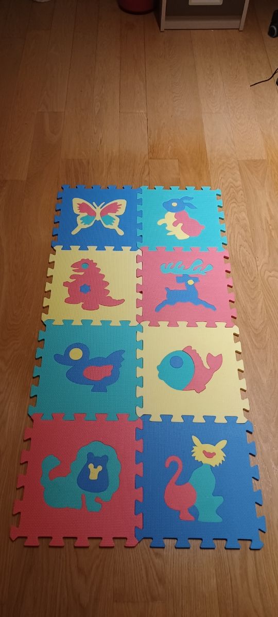 Detalles del productoPuzzle de 8 piezas de gomaespuma de animales. Cada pieza mide 32x 32. Superficie total 128 x 64. Tiene dos pequeñas taras en dos de los dientes, lo muestro en una de las fotos.