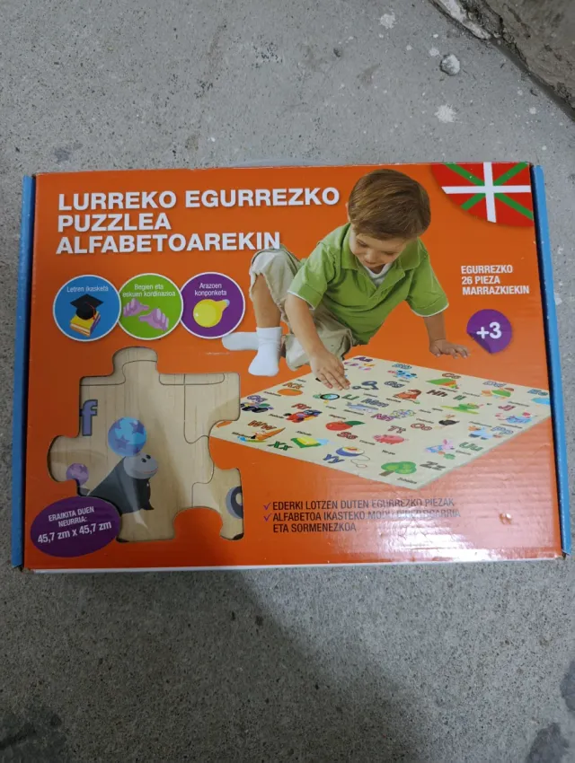 Detalles del productoLurreko egurrezko puzzlea alfabetoarekin 26 pieza ditu. 45,7×45,7 zm-ko neurria hartzen du.Puzzlea egiten duen umeak trebetasun ezberdinak garatu ditzake: letren idazketa, begien eta eskuen koordinazioa eta arazoen konponketa, besteak beste.Hiru urte baino gehiago dituzten umeek joko hezigarri eta dibertigarri bat badaukate!