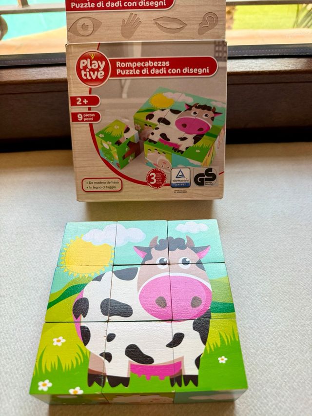 Puzzle de dados de madera de la marca Playtive. - Incluye 9 piezas. - Edad recomendada: 2+ años. - Fabricado en madera.