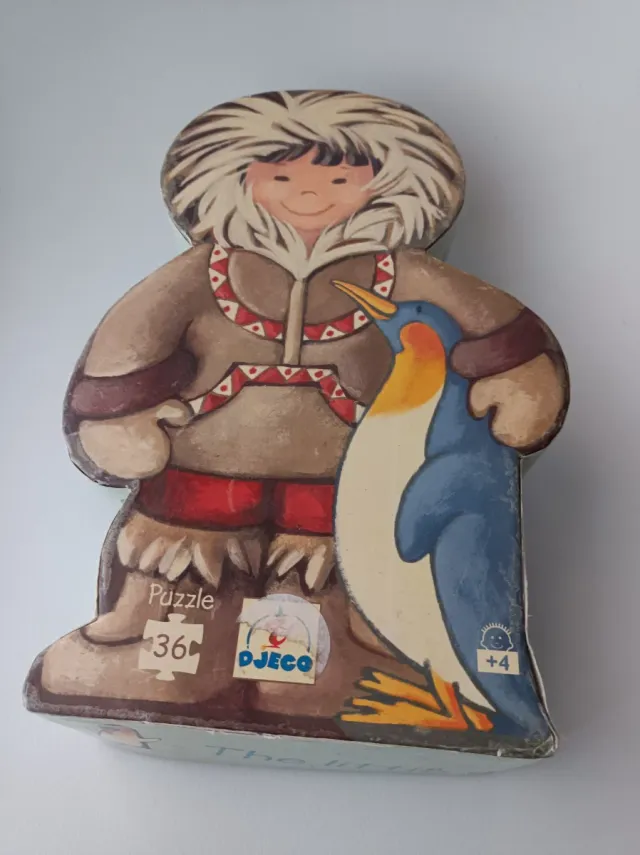 Puzzle infantil de la marca Djeco con un diseño de un niño inuit y un pingüino. Ideal para los más pequeños. - 36 piezas. - Edad recomendada: +4 años.