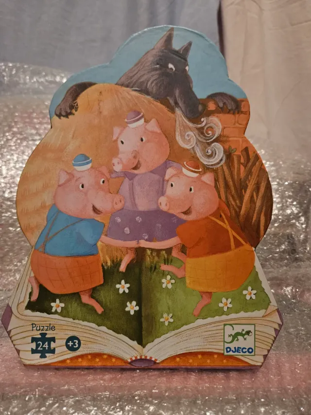 Detalles del productoDivertido puzzle de la marca Djeco con la temática de Los Tres Cerditos. Ideal para los más pequeños.