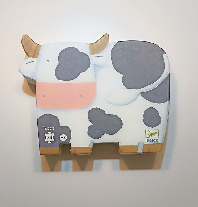 Divertido puzzle con forma de vaca de la marca Djeco. - 24 piezas. - Recomendado para mayores de 3 años. - Diseño colorido y atractivo.