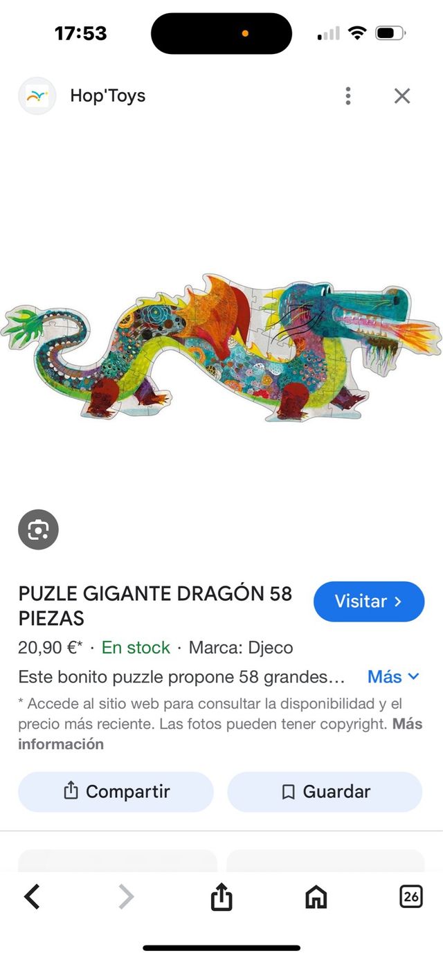 Detalles del productoPuzzle gigante de dragón, 1.38m, ideal para colgar. Es un bonito puzzle de 58 piezas grandes. El dragón está representado con colores vibrantes y mucha expresividad. Perfecto para los amantes de los rompecabezas. - Marca: Djeco - 58 piezas grandes