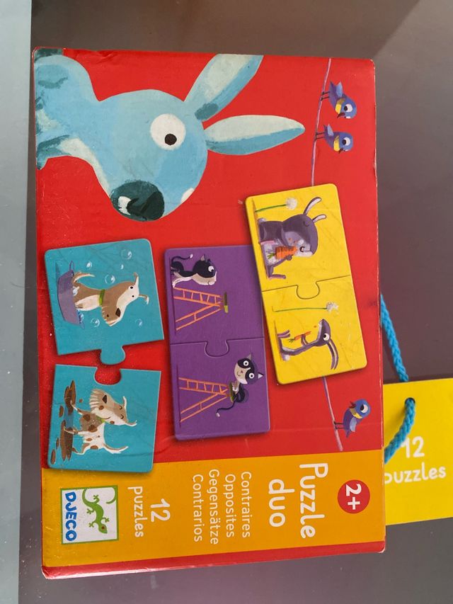 Juego de 12 puzzles de la marca Djeco. - Diseños variados con animales. - Fomenta la observación y la lógica. - Ideal para los más pequeños.