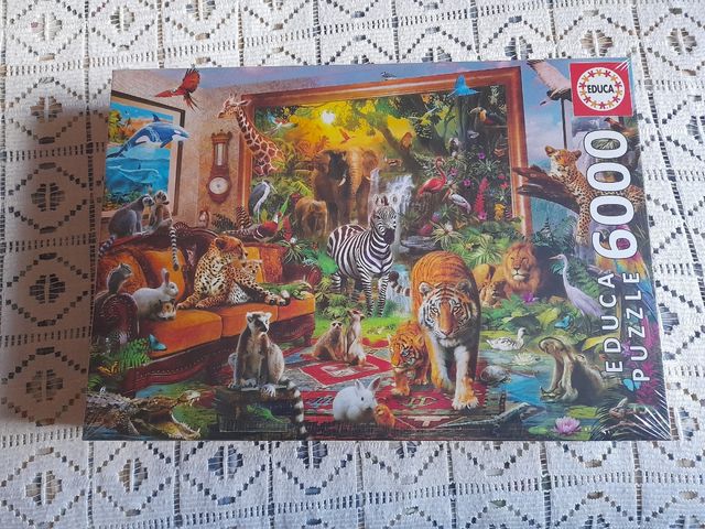 Detalles del productoPuzzle de 6000 piezas de la marca Educa. El puzzle muestra una escena con una gran variedad de animales en un salón. Es un puzzle nuevo y sin abrir, en perfecto estado.