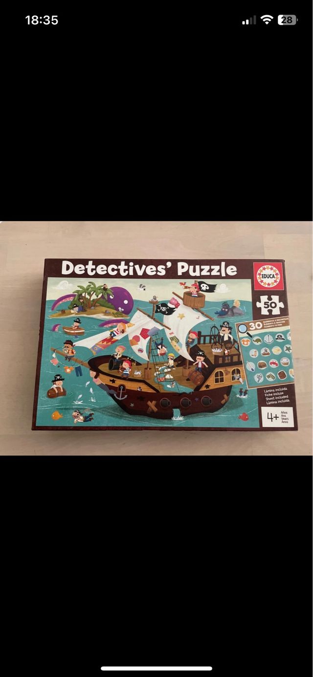 Puzzle de la marca Educa con temática de piratas. Ideal para los más pequeños. - 50 piezas. - A partir de 4 años. - Incluye 30 imágenes para buscar.
