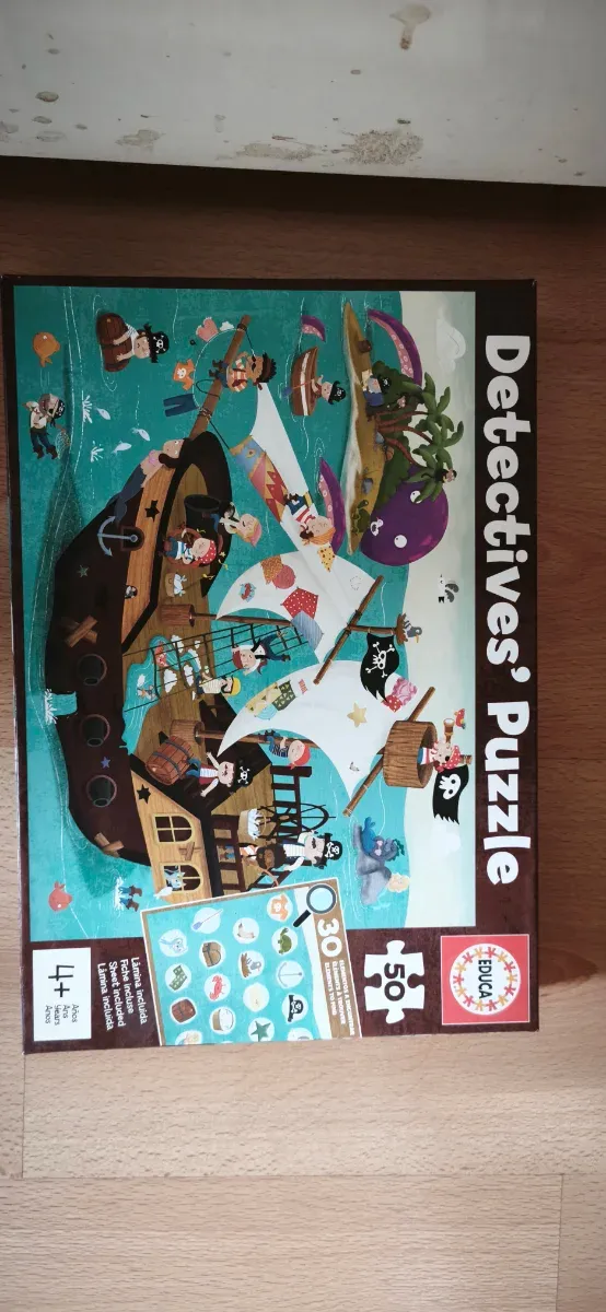 Puzzle de la marca Educa con temática de piratas y detectives. Ideal para los más pequeños. - 50 piezas. - Incluye lámina guía.