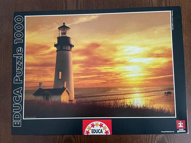 Puzzle de la marca Educa con una imagen de un faro al atardecer. - 1000 piezas. - Imagen de un faro en la costa durante el atardecer.