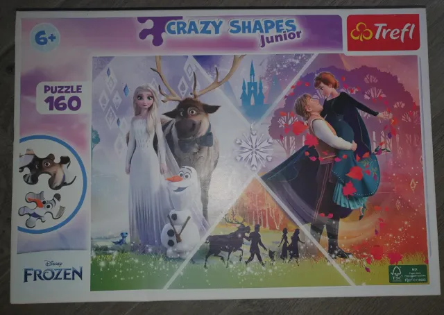 Puzzle Crazy Shapes Junior de Disney Frozen con 160 piezas. - Personajes: Elsa, Anna, Kristoff, Sven y Olaf. - Edad recomendada: 6+ años. - Marca: Trefl.