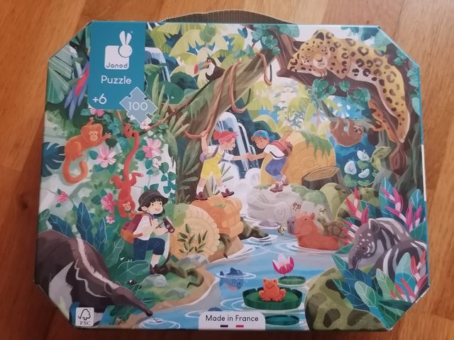 Puzzle de la marca Janod con temática de selva y animales. - 100 piezas. - A partir de 6 años. - Fabricado en Francia.