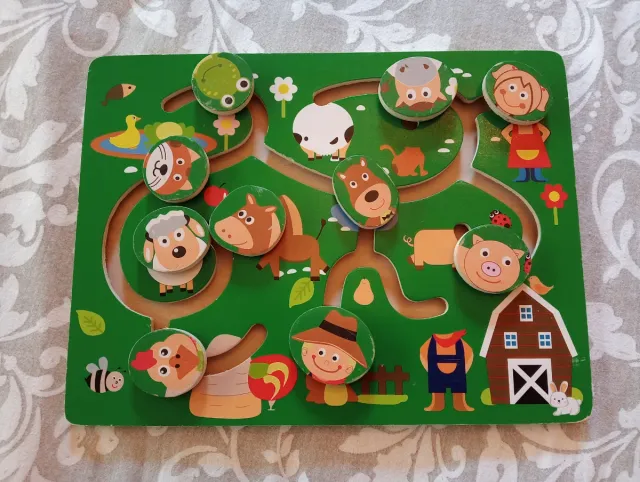 Detalles del productoDivertido puzzle de madera con diseño de laberinto y temática de granja.