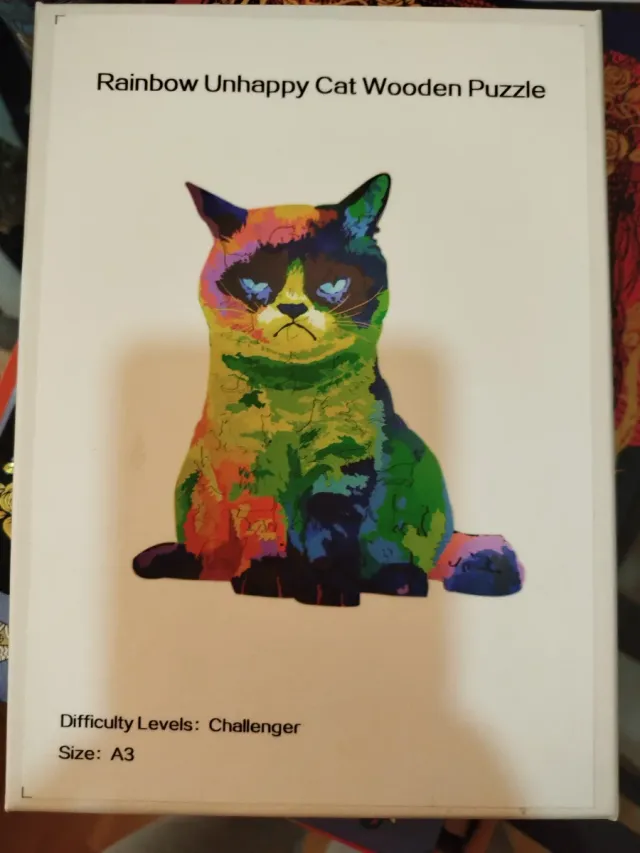 Puzzle de madera con diseño de gato arcoíris. - Dificultad: Challenger. - Tamaño: A3.