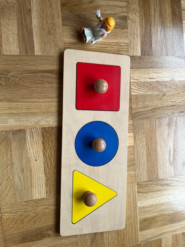 Detalles del productoJuego de encaje de formas geométricas de madera, ideal para los primeros aprendizajes.