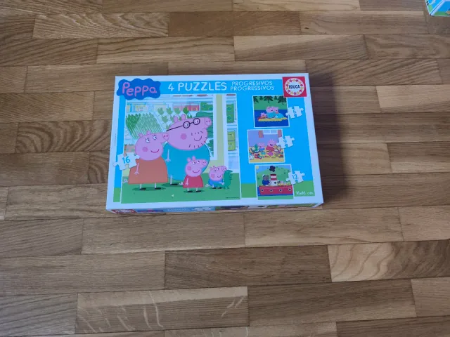 Detalles del productoSet de 4 puzzles progresivos de Peppa Pig de la marca Educa. Cada puzzle tiene un número de piezas diferente para un desafío gradual.