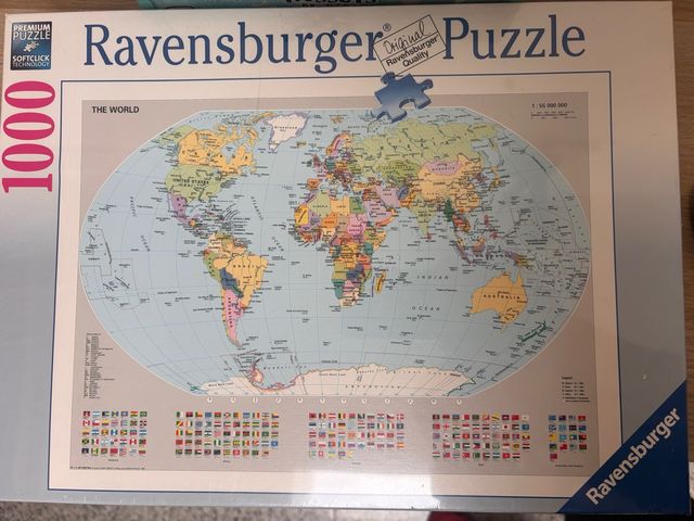 Detalles del productoPuzzle de 1000 piezas de Ravensburger con mapa del mundo. Sin estrenar.