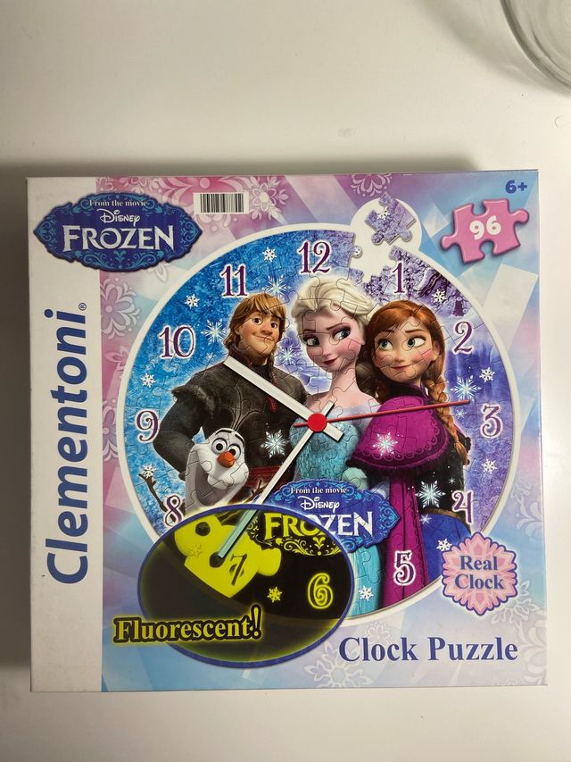 Detalles del productoPuzzle de Frozen en forma de reloj. ¡Es fluorescente! Incluye 96 piezas y mecanismo para reloj. El puzzle está en perfecto estado. - 96 piezas.
