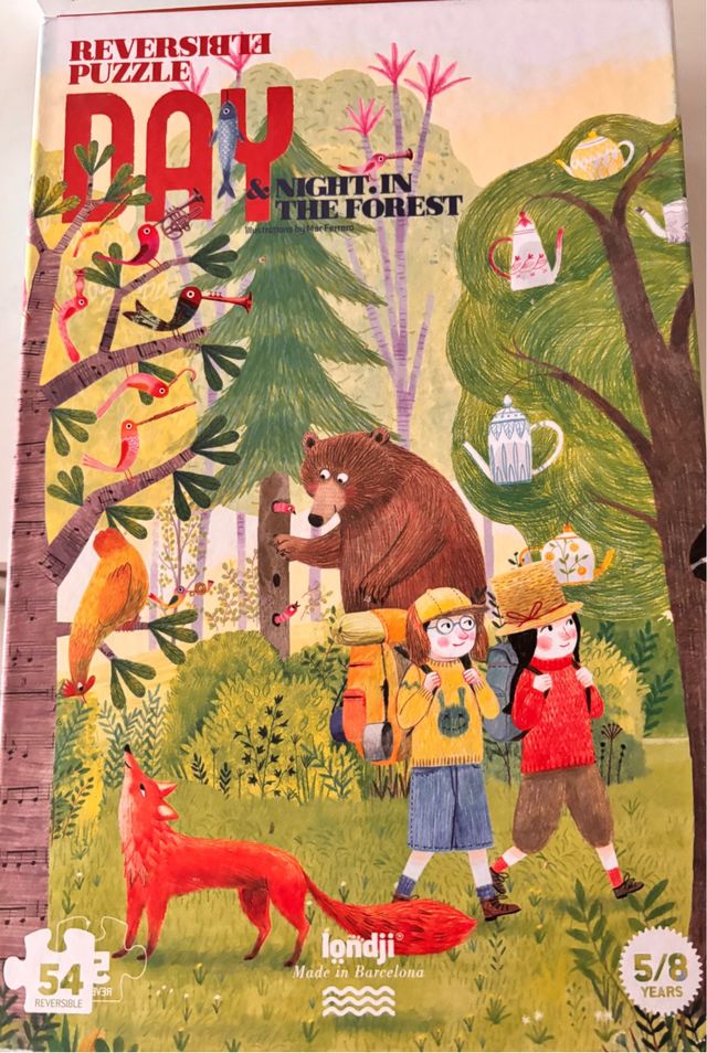 Detalles del productoPuzzle reversible de 54 piezas de la marca Londiji. El puzzle representa una escena diurna y nocturna en un bosque. - Incluye 54 piezas. - Diseño reversible, con dos imágenes diferentes. - Ideal para niñ@s a partir de 5 años. - El puzzle está en perfecto estado.
