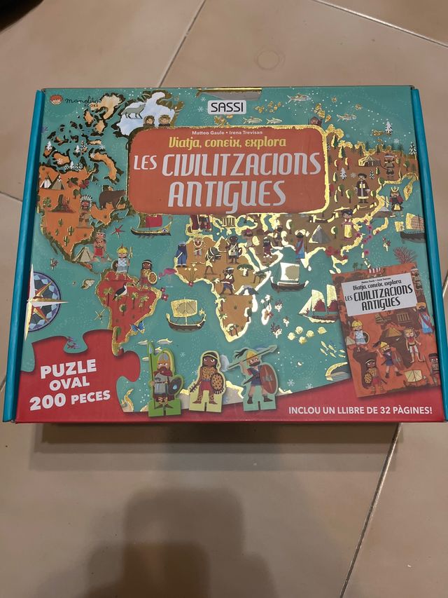 Puzzle ovalado de Sassi sobre las civilizaciones antiguas. Incluye un libro de 32 páginas.