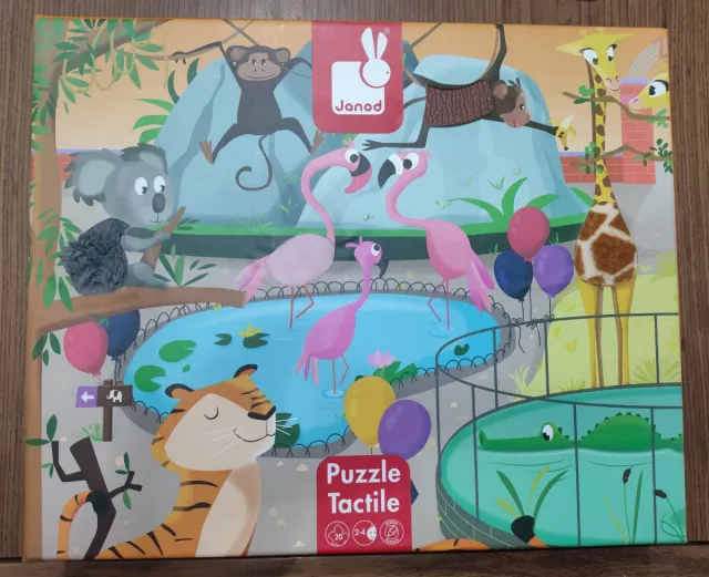 Detalles del productoPuzzle táctil de Janod con temática de animales de zoo. Ideal para los más pequeños de 2 a 4 años.