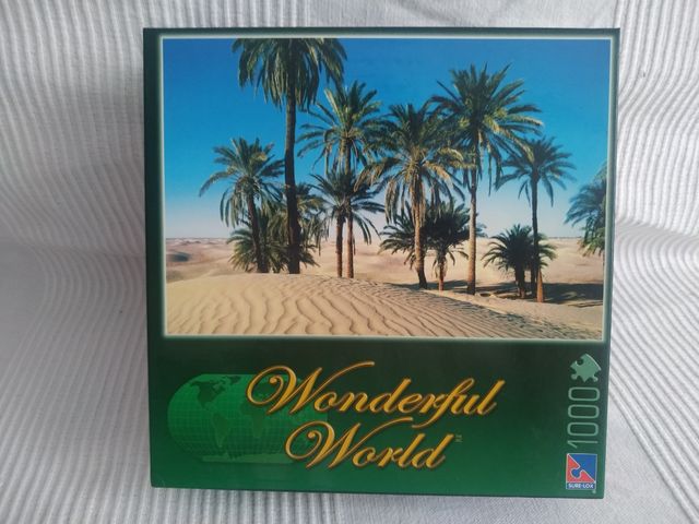 Detalles del productoPuzzle de la marca Wonderful World de 1000 piezas del desierto del Sáhara . El rompecabezas muestra la imagen de un paisaje desértico con palmeras. El puzle mide 73 x 48,57 centímetros y está sin abrir. En mi perfil tengo mas puzzles a la venta.