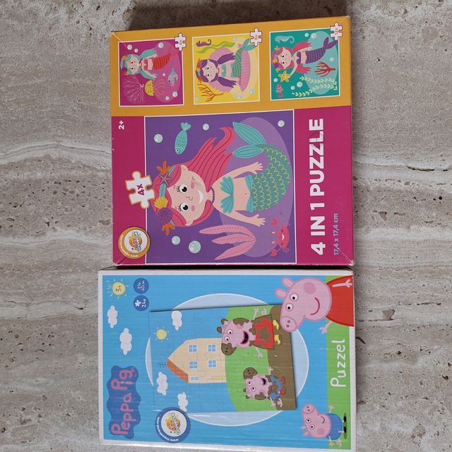 Detalles del productoLote de dos puzzles infantiles, uno de Peppa Pig y otro de sirenas.