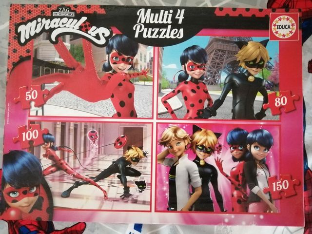 Detalles del productoPuzzles Educa de Ladybug 50, 80, 100 y 150 piezas. Como nuevo, muy poco uso. La caja un poco hundida.