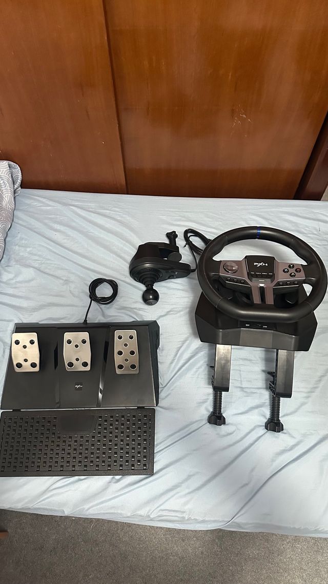 Vendo volante PXN V9 Gen 2 con pedales y palanca de cambios, usado muy poco y en perfecto estado, sin rasguños ni problemas.