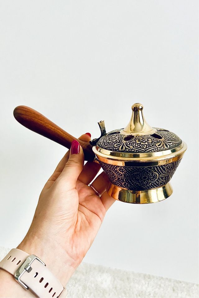 Diseñado para transportar de forma segura y cómoda por la habitación mientras se utiliza salvia blanca, palo santo, incienso en grano, hierbas, o bombitas.