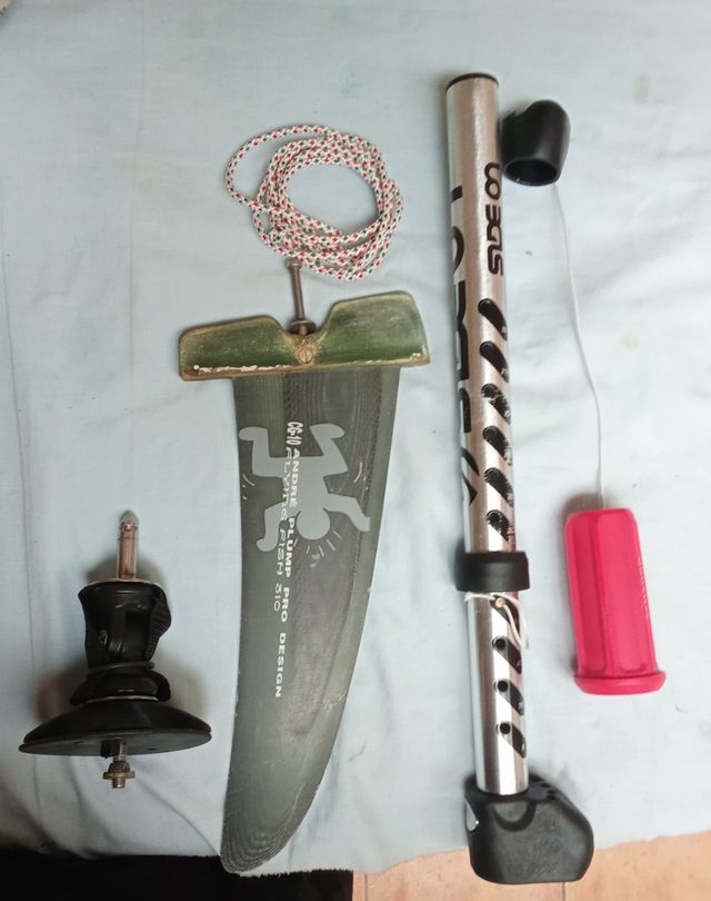 Detalles del productoSe vende quilla de windsurf usada, en buen estado, con algunos signos de uso. Incluye alargador de mástil y adaptador.
