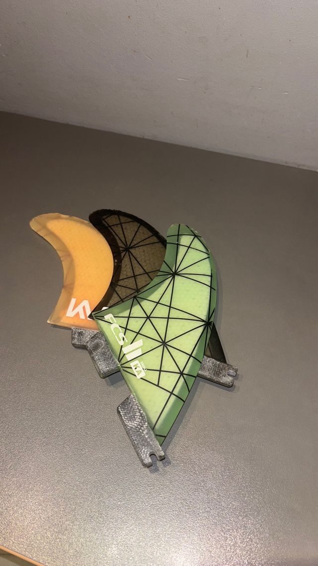 Set de 3 quillas FCS II Kolohe Andino, talla Small. Diseño con tecnología de panel de abeja interior, moderno y ligero.