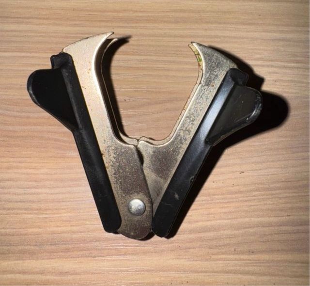 Herramienta para retirar grapas de forma sencilla. Su diseño permite un agarre firme. - Fabricado en metal. - Mangos recubiertos de plástico negro.