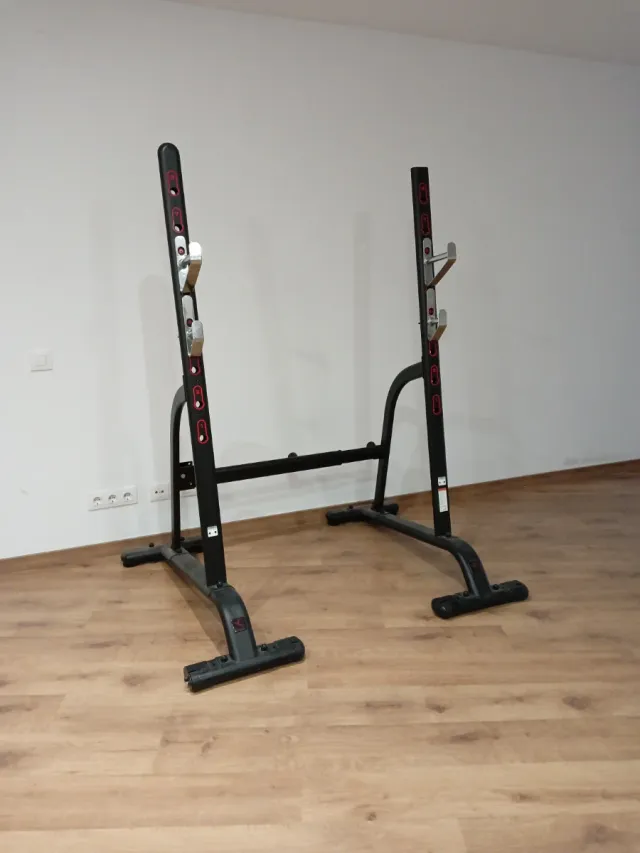 Rack de entrenamiento Domyos en color negro. Ideal para ejercicios de fuerza. - Estructura metálica. - Soportes ajustables. - Diseño estable.