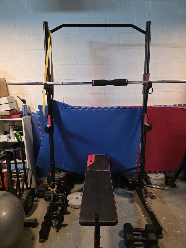 Rack de pesas y banco de gimnasio