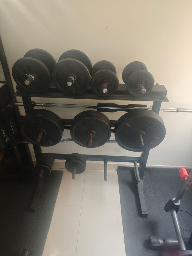 Detalles del productoEstupendo rack para almacenar tus discos y barras de pesas. Ideal para mantener tu gimnasio en orden.