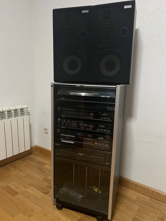 Rack HI-FI con Tocadiscos de vinilo, Radio FM/AM, amplificador, radiocassette y compact disc con cargador de 5 Cds. Se vende junto con Altavoces. No se vende nada por separado.